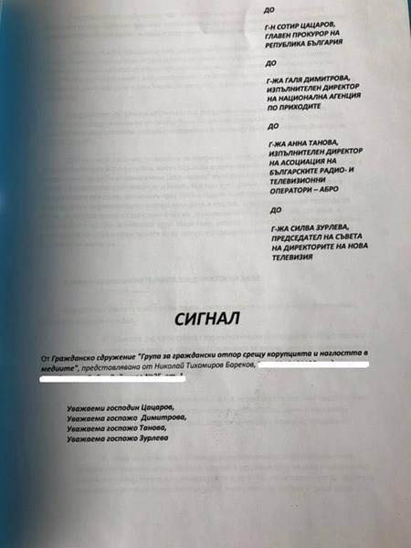Както обещах, днес гражданите за Отпор срещу корупцията и наглостта в медиите уведомихме главния прокурор Сотир Цацаров, НАП, ръководството на Нова ТВ и АБРО за имотните придобивки на водещия на едно сутрешно шоу Виктор Николаев.