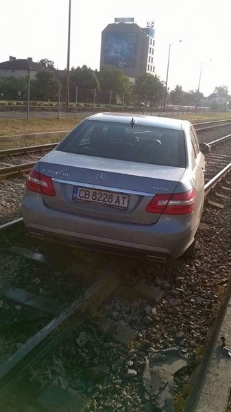 Собственик на тузарски мерцедес заряза колата си на трамвайна линия.