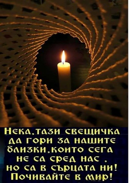 „Нека, тази свещичка да гори за нашите близки, които сега не са сред нас, но са в сърцата ни! Почивайте в мир!“.