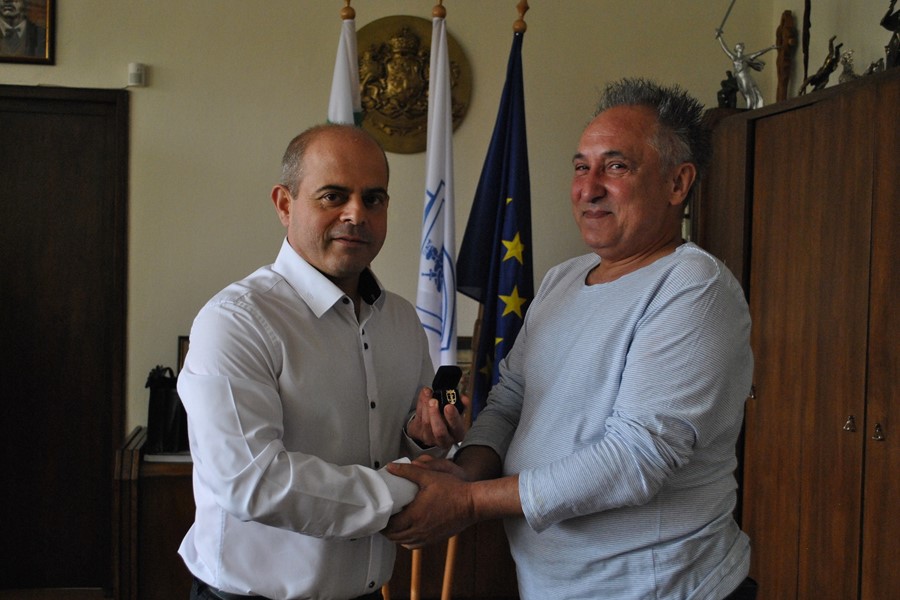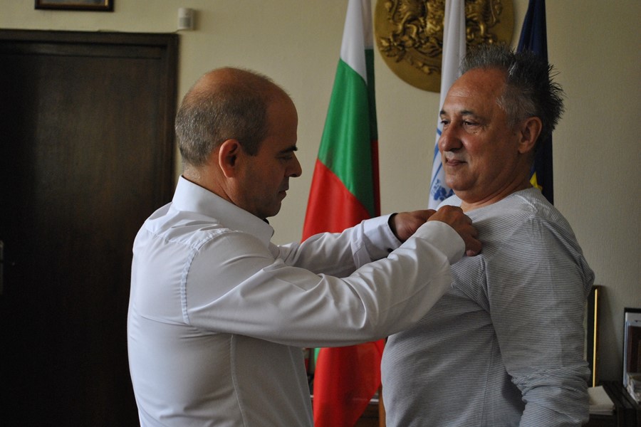 „Ще си я нося постоянно. Вие сте първият кмет, който признава усилията ми, свързани с работата с децата. В лицето на настоящето ръководство на Общината виждам приятелски протегната ръка, ще се радвам да съм полезен на родния си град“, заяви развълнуван по време на срещата днес бате Енчо, който за пръв път ще е част от русенския карнавал.