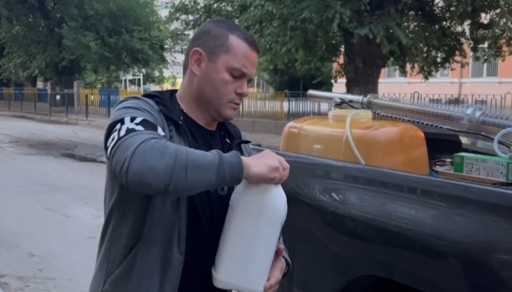 Това е кметът Пенчо Милков, който лично напълни в туби убийствена течност и я разпръска из паркове и квартали. Избърса потно чело накрая и обеща: "Довечера продължаваме в 21 часа. Сега отивам на работа". Демек - докато си почива пръска, после кметува, шегуват се от СЕГА.