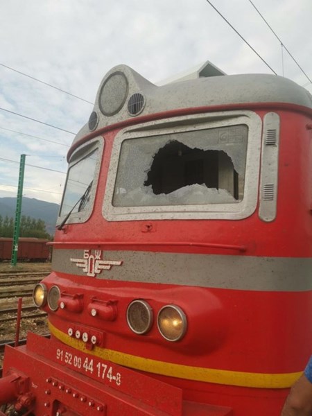 Неизвестно говедо е хвърлило или голям камък, или нещо още по-тежко и в движение е разбил предното стъкло на движещ се бърз влак от София за Бургас. Ранени са машинистът и неговият помощник.