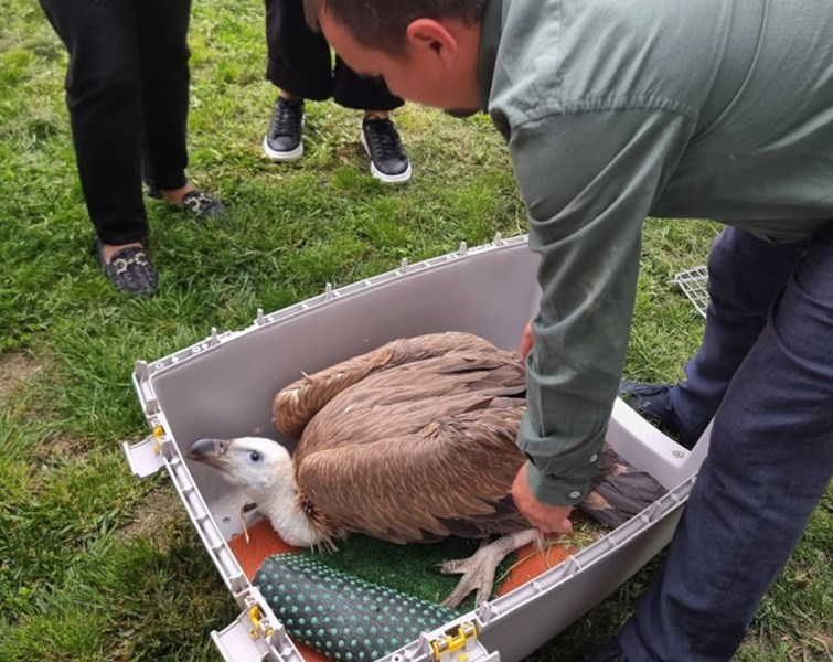„В момента тази двойка си има пиле, за което се грижи, а това е лешеядчето, излюпено преди близо три месеца. По тази причина ще се наложи сега то да бъде изведено от волиерата“, обясни д-р Руско Петров от спасителен център за диви животни „Зелени Балкани“. Той допълни, че „тези птици в природата имат излюпено едно малко и сега ще вземем по-голямото пиле. Ние ще го пренесем в самостоятелна волиера, където ще престои около 20-30 дни под наблюдение. Веднага след това ще бъде преместено в адаптационна волиера в природен парк „Сините камъни“. Там вероятно ще престои около година след което се надяваме да сложим на птицата предавател и да можем да я освободим. Целта на този предавател е да следим всяко едно негово движение“, разказа ветеринарният лекар.