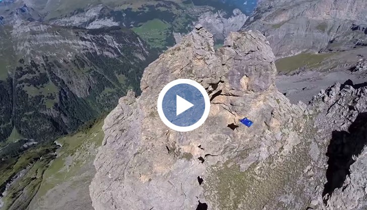 Италианският бейсджъмпър Ули Емануеле „преразя“ скала с тялото си, като прелетя през процеп, широк малко над два метра! Неговият полет бе заснет с прикрепени за каската и костюма му камери.