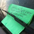 Във Фейсбук е качена снимка на кола с бележка под чистачките, написана с химикал върху зелен намачкан лист.