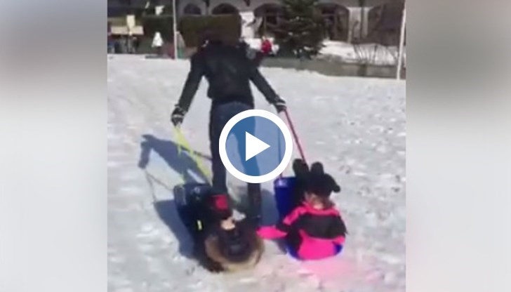 А на кадрите се вижда как той тегли не една, а цели две шейни, тичайки.