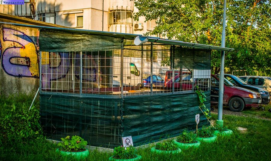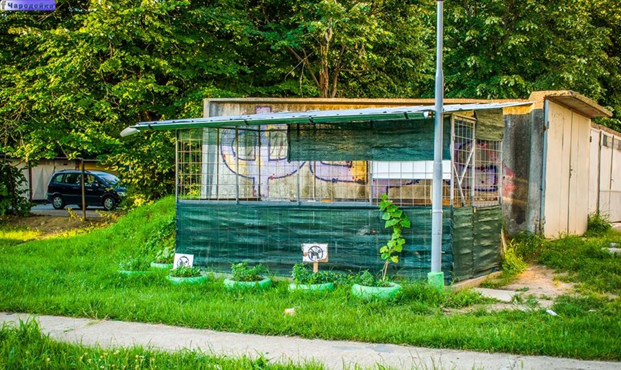Кадрите показват беседка между блок 8 и 9 в "Дружба - 3". Любопитното обаче е, че кътчето за отдих е заградено с решетки и се заключва. На пръв поглед прилича на клетка.