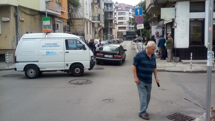 Тази вечер автомобил, собственост на столичния "Център за градска мобилност", поделение "Паркиране и мобилност", пълен със скоби, отне предимството и помля „Ситроен” със софийска регистрация.