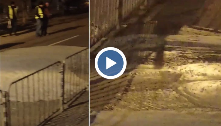 Бетонова пяна под налягане от строежа изби под асфалта на булевард "Евлоги и Христо Георгиеви".