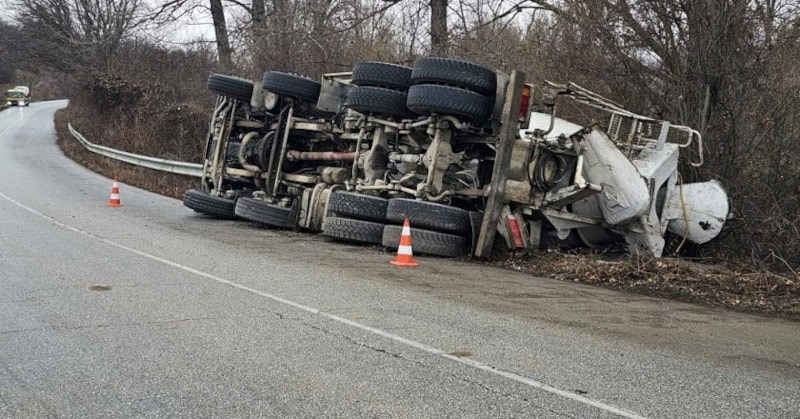 Бетоновоз се е преобърна на пътя Пазарджик - Панагюрище