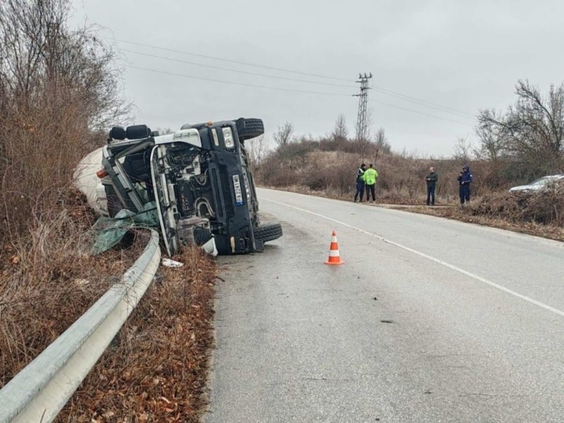 Тежкотоварен автомобил, превозващ 11 тона бетон, се преобърна на пътя Пазарджик - Панагюрище, съобщиха от Областната дирекция на МВР - Пазарджик.