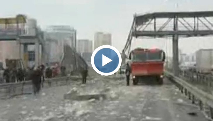 Бетоновоз срина пешеходен надлез върху оживена магистрала