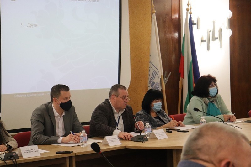 Заседанието бе водено от областния управител Борислав Българинов, неговите заместници Синан Хебибов и д-р Стефка Караколева, както и временно изпълняващия длъжността директор на РЗИ д-р Искра Генева.