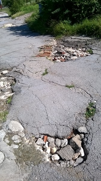 Всеки ден е едно приключение преминаването по нашата улица. Изпращам Ви една малка част от състоянието на улицата. Има безброй дупки, а някъде и малки кратери.