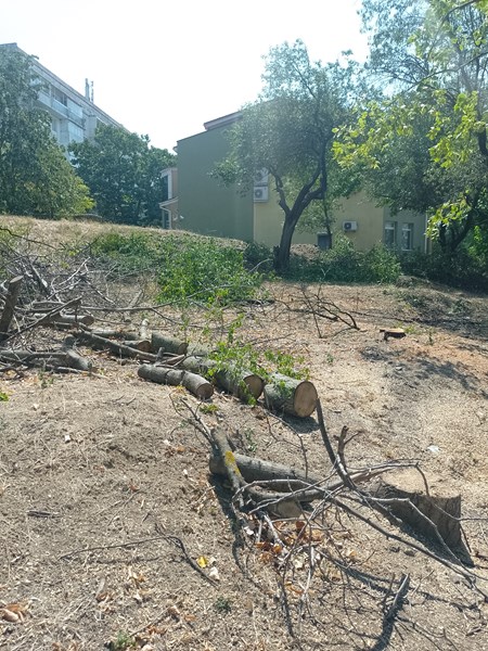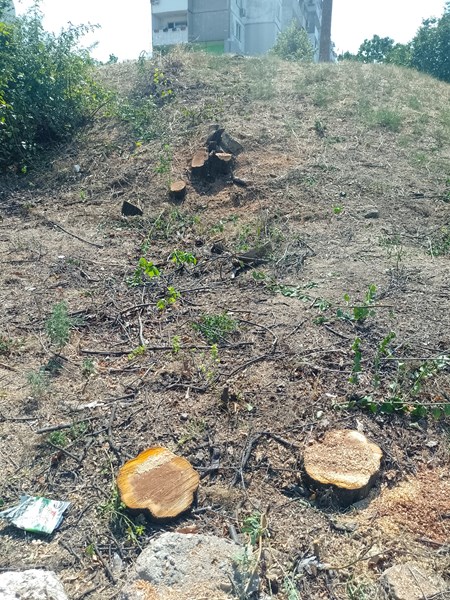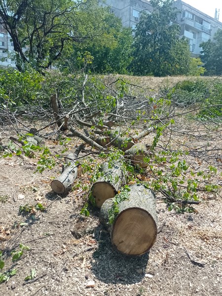 В квартал "Чародейка" на улица "Опълченска" - блок 309 и 310 се рязаха съвсем живи и здрави дървета.