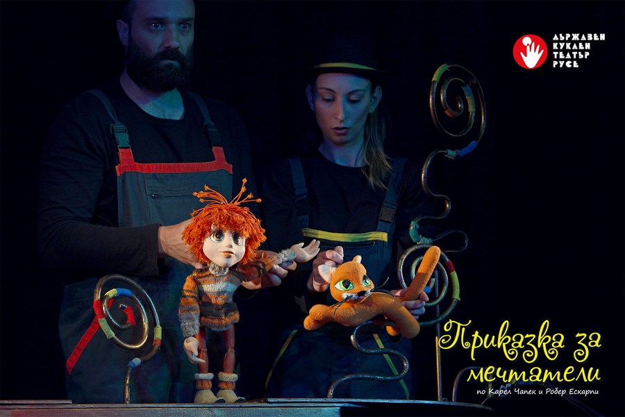 „Приказка за мечтатели” е спектакъл по Карел Чапек и текстове на Робер Ескарпи за мечтите, които те карат да летиш, които те карат да изобретяваш и да създаваш нечувани и невиждани неща. Нека заедно с героите да се научим да летим там, където никой не е летял, да виждаме там, където никой не вижда, да се научим да не спираме да мечтаем, когато всички други спрат, че току виж… ни купили котка!