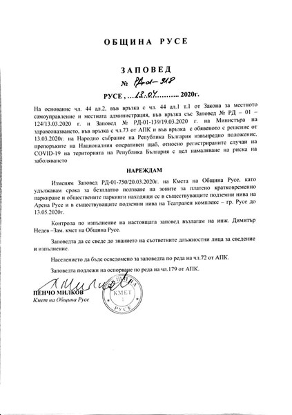 Пълният текст на заповедта можете да видите в галерията ни.