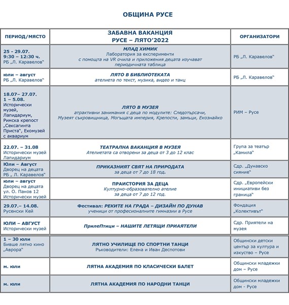 14 различни спорта и разнообразни образователни ателиета, работилници и летни академии очакват децата на Русе през юли и август
