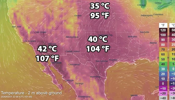 Безпрецедентна за месец март гореща вълна връхлетя западната половина на Съединените щати, като температурите в Югозапада се очаква да надхвърлят 40 градуса по Целзий в следващите дни. Мощен антициклон, известен като "топлинен купол", блокира атмосферната циркулация и създава реална опасност за здравето на милиони американци, които не са физиологично аклиматизирани за подобни летни стойности в началото на пролетта.