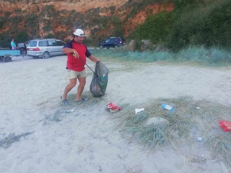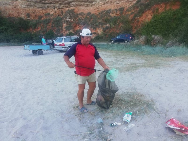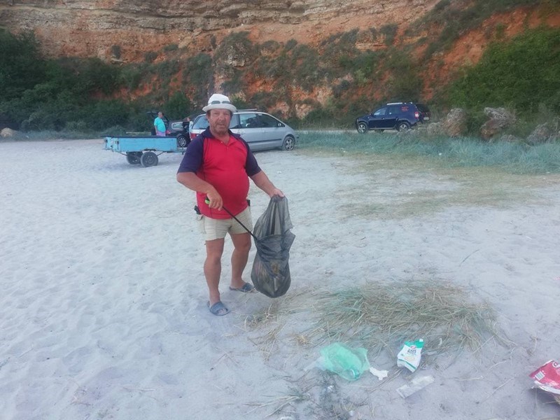 Ангел Ляпов от каварненското село Българево чисти всяка вечер плаж Болата.