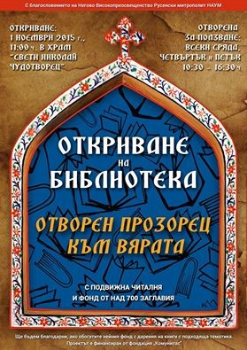 На 1 ноември – Деня на народните будители, в Русе отваря врати библиотека към храма „Св. Николай Чудотворец“ с повече от 700 книги.