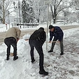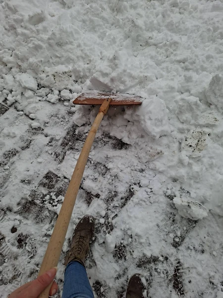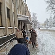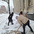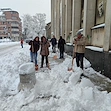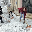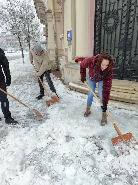Служителите на Регионална библиотека "Любен Каравелов" в Русе изринаха снега пред сградата на културния институт тази сутрин. Вместо да разчитат на общинските служби по чистота или на специализиран персонал, библиотекарите грабнаха лопатите преди началото на официалното си работно време, за да осигурят безопасен достъп за своите читатели.