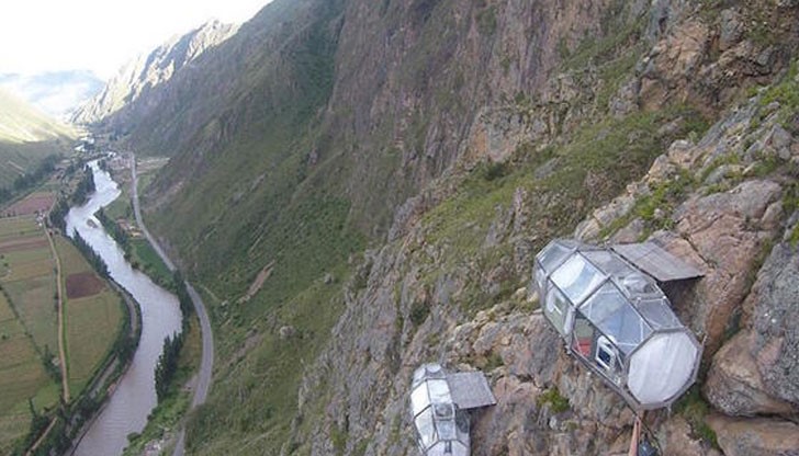 Три прозрачни капсули са закрепени за скалите и от тях се разкрива невероятна гледка към величествената и мистична долина. Кондорите са единствените съседи на гостите в Skylodge Adventure Suites.