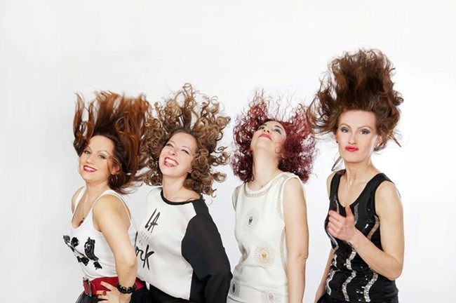 На снимките бившата съпруга позира, като развява коса и изглежда млада, свежа и забавна. На друго фото четирите жени са показали дълги крака в черни чорапогащници.