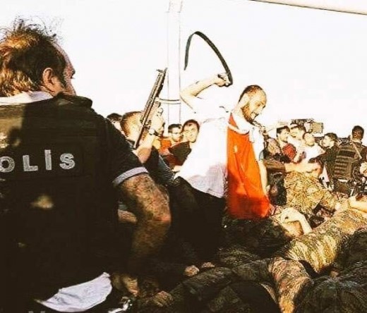 Поддръжниците на президента на Турция Реджеп Таийп Ердоган споделят в социалните мрежи снимки на бити пленници и селфита с пленена техника на метежниците.