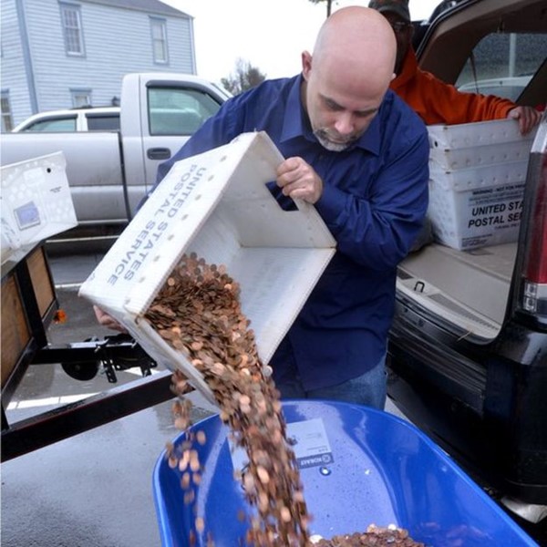 Монетите на Ник Стафорд от Кедар Бъф, Вирджиния, са били толкова много, че машините за преброяване не са могли да се справят с обема. На персонала е отнело повече седем часа, за да брои монетите, като са работили извънредно.
