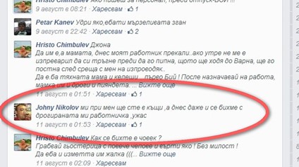 „Удри”, го съветват те, а той отговаря: „Днес даже се и бихме с дрогираната ми работничка, ужас!” „Грабвай гьостерицата с повече чепове и върти яко. Да е.а и изметта им жалка”, пише друг приятел на бизнесмена.