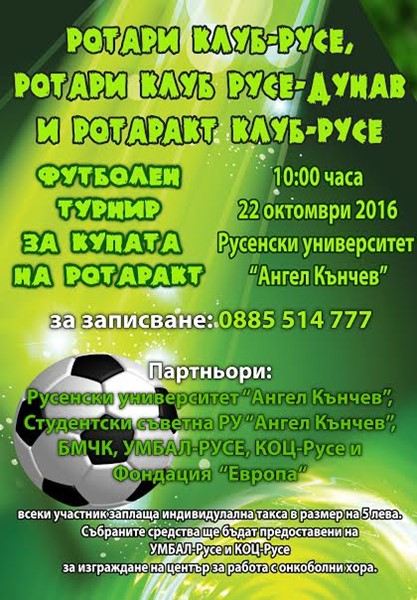 На 22 октомври 2016 година в Русенския университет „Ангел Кънчев“ ще се проведе футболен турнир „За купата на Ротаракт“.