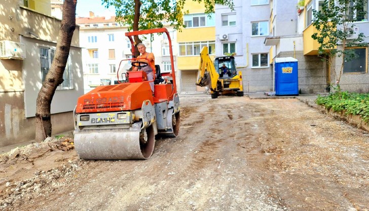 Продължават дейностите по възстановяване на фонтана в градинката до Общинския пазар "Олимп" в квартал "Здравец", както и ремонтът на тротоарната настилка пред сградата на Регионална библиотека "Любен Каравелов" по улица "Иван Вазов".