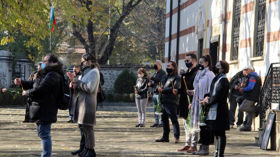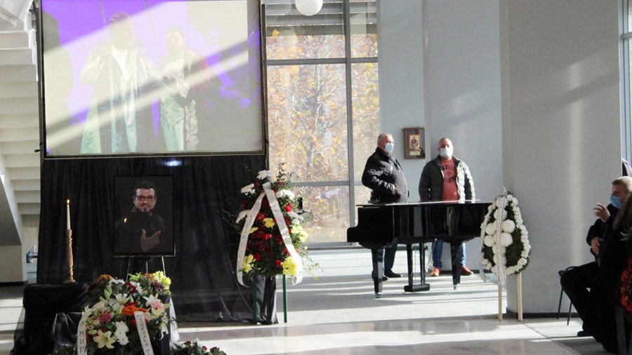 Минути преди началото на траурната църковна служба прозвучаха аплодисменти. Букет от бели хризантеми положи сценичната партньорка и негова спътница в живота, сопраното Таня Иванова.