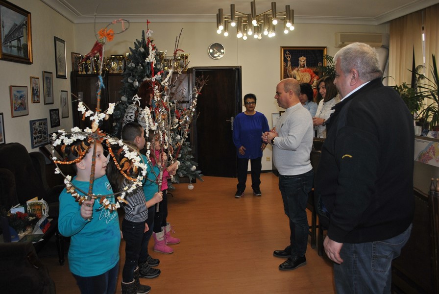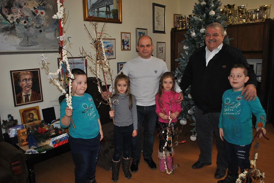 Две двойки близнаци – за двоен берекет през годината - сурвакаха за здраве кмета Пламен Стоилов и зам.-кмета по хуманитарни дейности Иван Григоров днес.