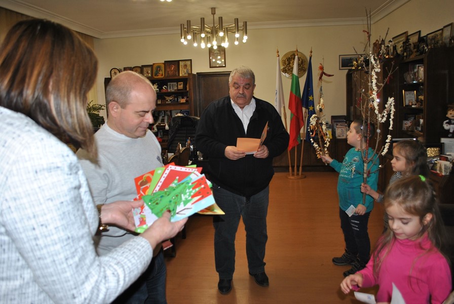 Кметът Пламен Стоилов им раздаде подаръци и им пожела да са много здрави и да постигат с лекота успехи през новата 2017-а година.