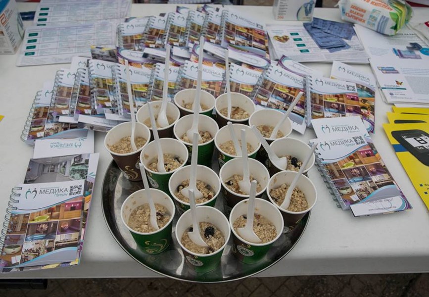 На всеки, преминал през пункта на инициативата, бе предоставено и примерно хранително меню, а домакините от „Общински пазари” ЕООД-Русе, почерпиха всички с приготвена от тях здравословна овесена каша. Предвид определящото значение на начина на живот на всеки един от нас, нивата на стрес и рискова родствена обремененост, то и днешния ден бе съобразен с тези фактори - ученици от СУ „Йордан Йовков” танцуваха свой народен танц и представиха хореография на модерен балет, тъй като танцът е един от много приятните форми на движение и профилактика срещу обездвижения начин на живот, водещ неизбежно и до диабет.
