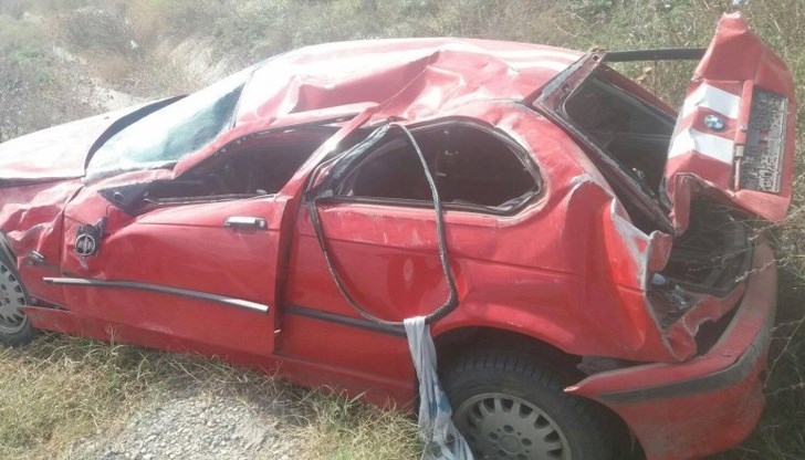 Автомобилът е изоставен в канавката, липсват регистрационните му табели.