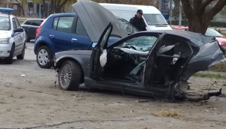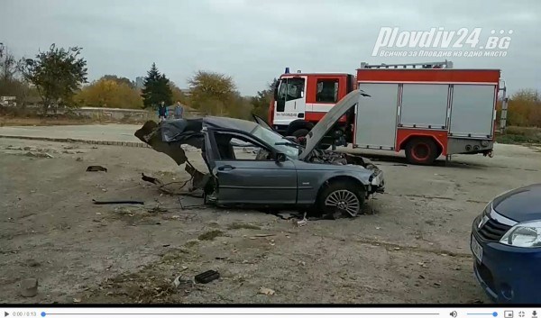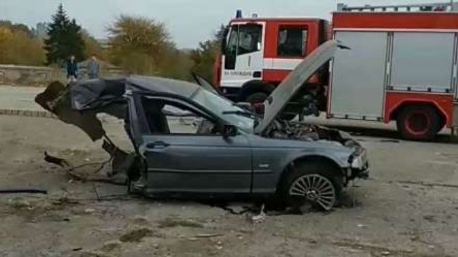 След изключително тежък удар автомобил БМВ буквално се разцепи на две, а като по чудо при инцидента няма сериозно пострадали.