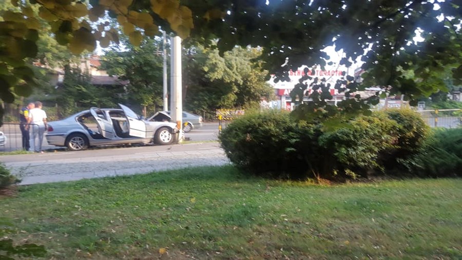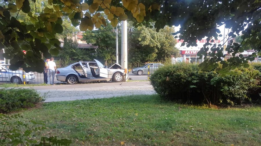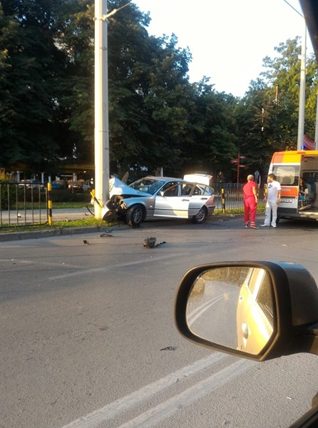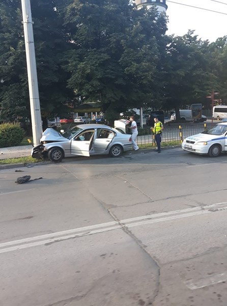 БМВ се е ударило в уличен стълб рано тази сутрин. на мястото на инцидента има екипи на полицията и Спешна помощ.