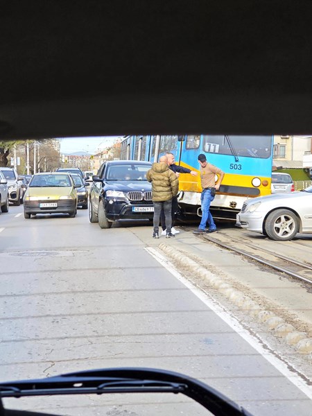 Пътнотранспортно произшествие между джип "БМВ" и трамвай №11 стана днес в София.