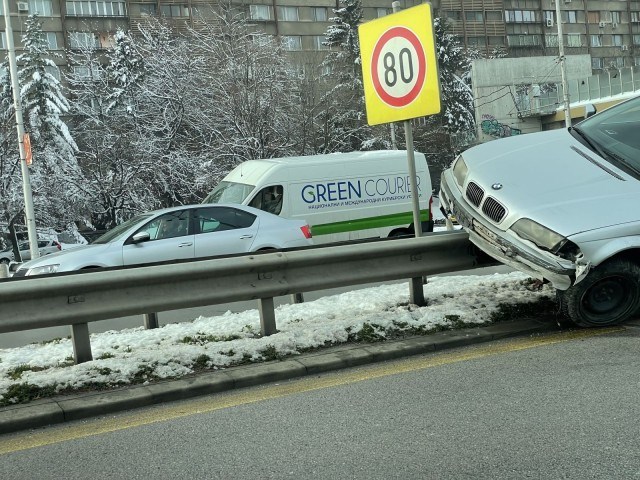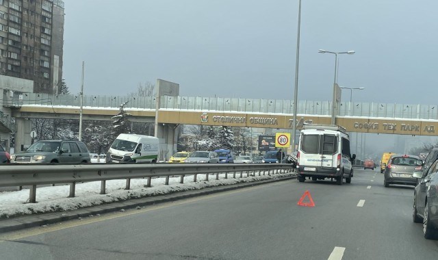 Лек автомобил "БМВ" създава затруднения на трафика на булевард "Цариградско шосе" в столицата както в посока център, така и в посока изхода към магистрала "Тракия".