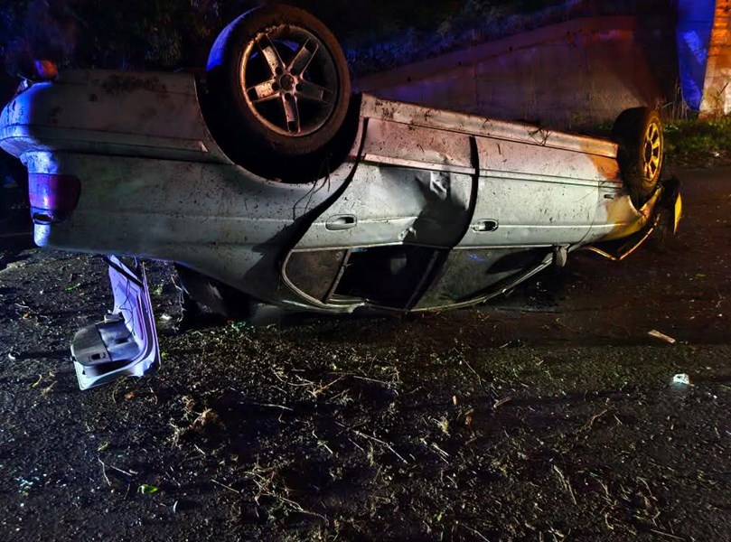 Лек автомобил БМВ се преобърна по таван на пътя Русе – Николово през изминалата нощ. Инцидентът се случи малко преди Хиподрума, в непосредствена близост до колоните на моста.