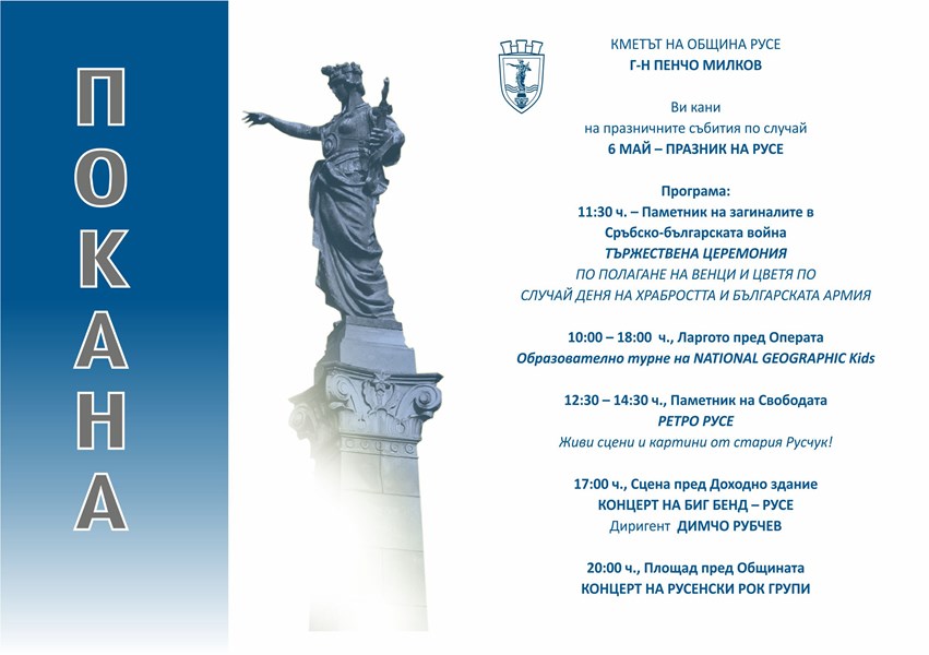 На 6 май Община Русе подготвя богата празнична програма по случай Деня на храбростта, който е и Празник на Русе.
