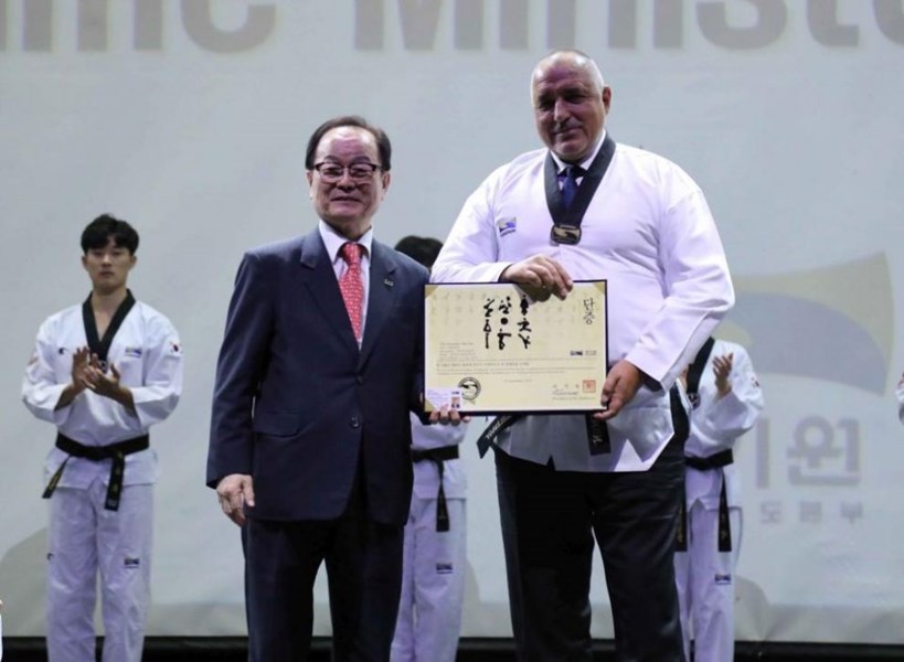 Премиерът Бойко Борисов е удостоен с почетния девети дан по таекуондо, предаде „Фокус“ от Сеул.