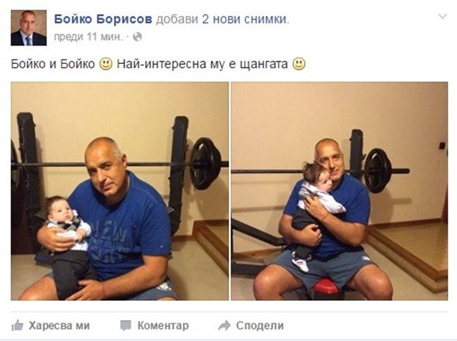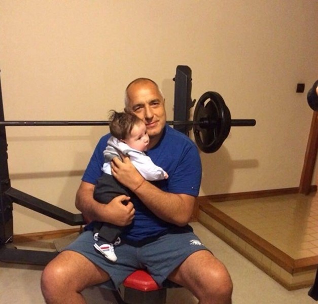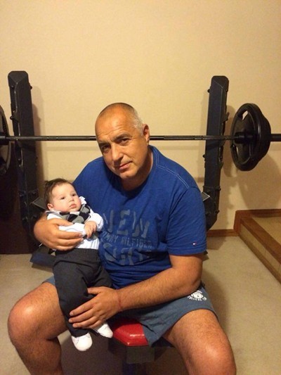 Премиерът публикува във фейсбук две снимки с невръстния Бойко-младши, а под фотосите уточни, че бебето най-много се впечатлява от щангите.