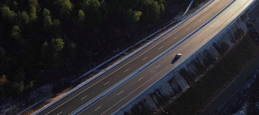 Премиерът публикува и снимки и видео от строежа на новата отсечка от магистралата.