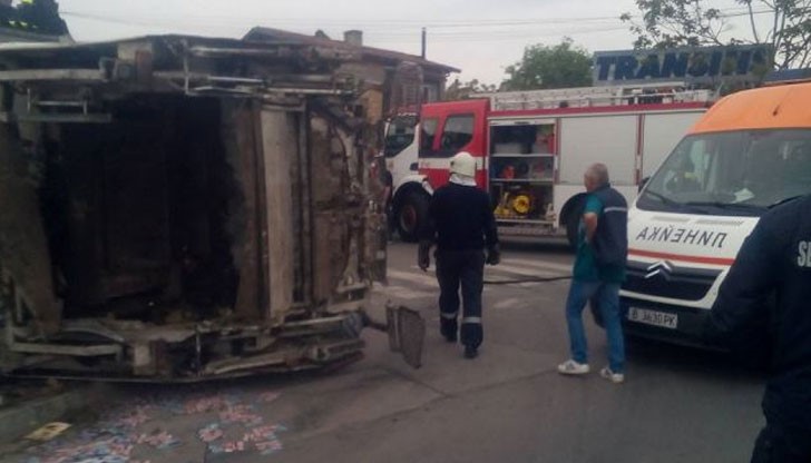 Пострадал е шофьорът и е откаран с линейка в болница. В момента на място има разследващ полицай и започва оглед.