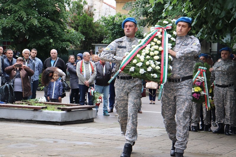 По традиция тържествената церемония завърши с полагане на венци и цветя пред Мемориала на загиналите във войните за национално обединение, както и с вой на сирени в чест на Ботев и загиналите за свободата.