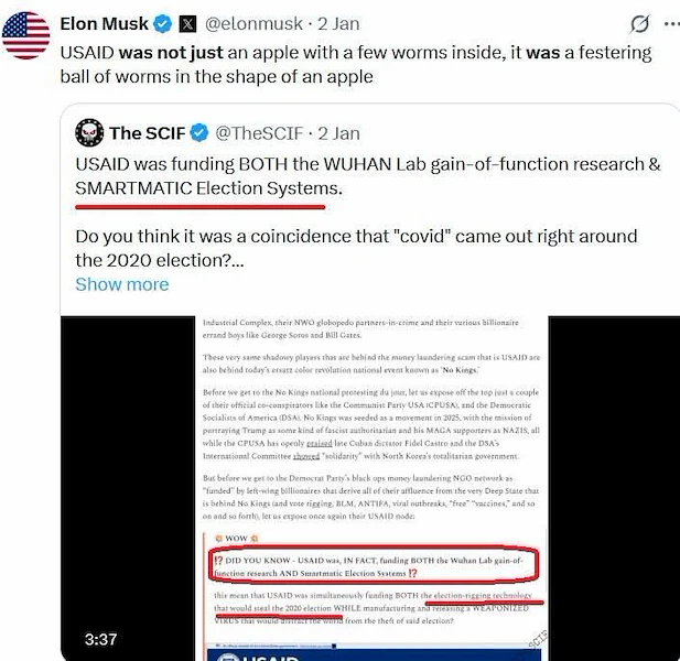 Важно е да се отбележи, че Мъск всъщност репоства информация от анонимен профил с името "The SCIF", което повдига въпроси за първоизточника на тези сериозни обвинения. Самият Мъск води открита война с USAID още от 2025 г., когато нарече агенцията "престъпна организация" и "топка от червеи" в опитите си да я реформира или закрие.
